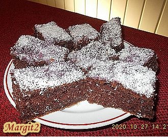 Egy 18x25 cm-es kikent és kilisztezett tepsiben egyenletesen eloszlatjuk a tésztát és előmelegített 170 fokos sütőben 30 perc alatt megsütjük. (Tűpróba!)