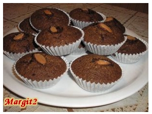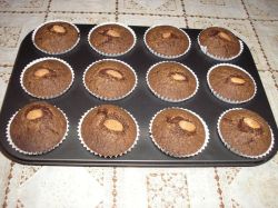 A sütőből kivéve rácsra tesszük a muffinokat, majd csoki mázba merítjük, és megszórjuk mandulaforgáccsal, és hagyjuk megszáradni.