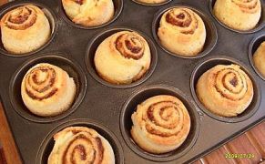 töltjük, és megszórjuk a fahéjas cukorral. 190 fokon előmelegített sütőben 20