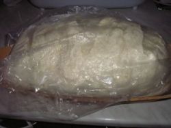 1 óra múlva óvatosan kiveszem a tálból és a zacskóval együtt belerakom a tepsibe.