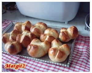 Mindezt a tésztaprogramon összedagasztatni, kicsit kelni hagyni, és a gépből kivéve 9 db-ra elvágni, zsemleformára alakítani. Tetejét keresztbe bevágni. Ezután megkenni 1 egész tojással, és mákkal megszórni.