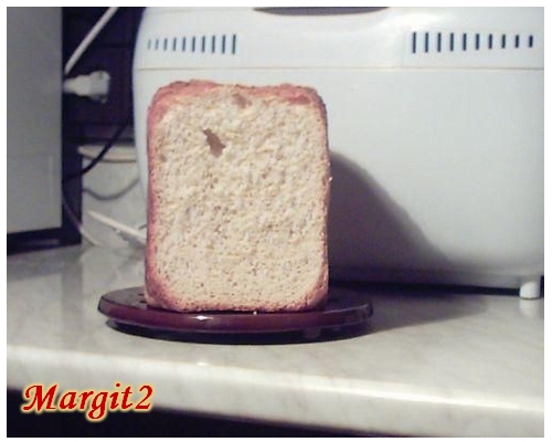 A gép vásárlása után azonnal a mellékelt receptgyűjteményből (Clatronic) nekiláttam az első úgynevezett "Klasszikus fehérkenyér" megalkotásának. Íme az eredmény: