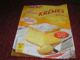 Közben fél liter tejet felfőzök egy vaníliás pudingporral, 1 evőkanál liszttel, 4 tojás sárgájával. Ha kihűlt elkeverem benne a 25 dkg margarin és a 20 dkg porcukor keverékét.
