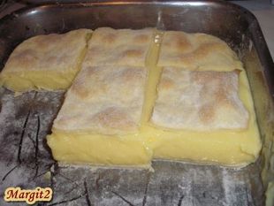 Megjegyzés: Kibontáskor késsel óvatosan vágjuk körbe a tepsi szélei mellett, úgy szépen le lehet majd szeletelni!