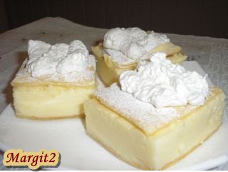 Kiveszem a sütőből, hagyom a tepsiben kihűlni, hidegen szeletelem, porcukorral meghintve tálalom. De cukor nélkül is nagyon finom.