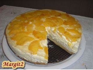 Őszibarack szeletekkel citromkarikák helyett a tetején: