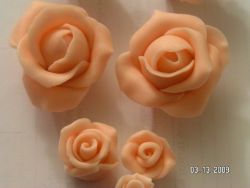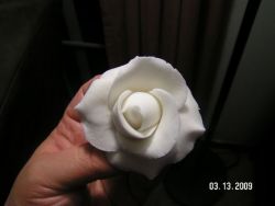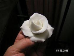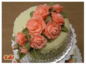 A fondantot nem nehéz megcsinálni egyáltalán... olyan mintha kenyeret dagasztanál, vagy valami hasonló tésztát... csak kicsit ragacsosabb az elején, de aztán szépen összeáll az egész és egy nagyon jó tapintású sima masszát kapsz. A fondantból is lehet rózsát csinálni, de ahhoz nem kell habzsák... ez egy teljesen más technika... Itt kinyújtod, és magyarul kiszaggatod a virágokat vagy a szirmokat és összeragasztod őket virággá... Ez az igazi művészet és alkotás szerintem ebben a szakmában. Én már egy kicsit tudom az alapokat, mert már tudom hogyan kell rózsát csinálni (a honlapomon a barackszínű rózsákat meg a fehér rózsákat fondantból csináltam). De most február 1-től megyek megint a Wilton tanfolyamra ahol, a sugar gum paste (valójában az is fondant) virágokat tanulom meg. A sugar gum paste is tulajdonkeppen fondantból van csak van hozzáadva egy anyag amitől rugalmasabb lesz és kő keményre meg tud száradni rövid idő alatt.