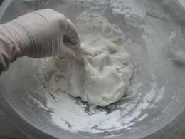 nyújthatjuk, száradás után porcelánszerű, törékeny. Növényi zsírral vékonyan