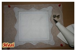 -Sütőpapírt celluxoztam rá, és habzsákból átrajzoltam a mintát.