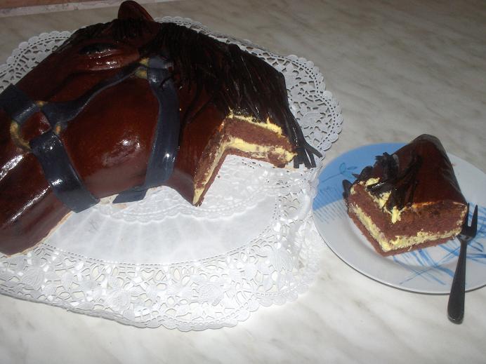 ![]() ![]() Lófej torta Kakaós piskóta lapból készül, félbevágva Töltelék: Mascarpone-s narancshab 0,5 tejszint felverek kemény habnak, 3 tojás sárgáját felhabositok 20 dkg cukorral, majd gőzfürdőben megfőzőm, és beleteszek 2 kk előre beáztatott zselatint. Leveszem a gőz felől, belekeverek 20dkg mascarpone-t, belereszelek 2 narancs héját, és beleöntök 0,5 dl narancslikőrt(én szörpöt tettem bele a gyerekek miatt), és óvatosan beleforgatom a tejszinhabba.Végül beleteszem egy narancs meghámozott, és hártyájától megfosztott kockára vágott húsát. Töltöm a tortát, pár órát hagyom dermedni, és diszitem! |